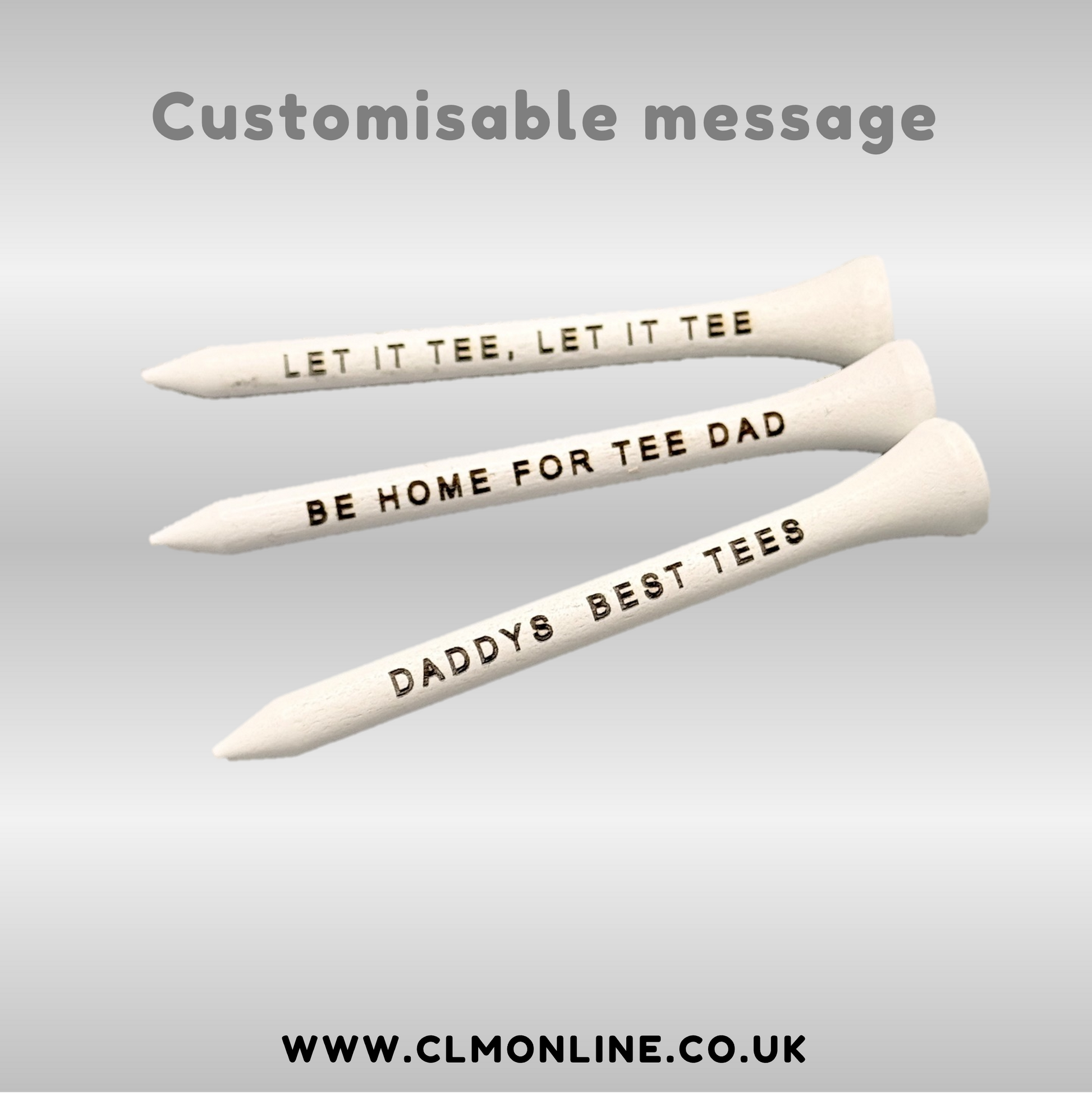 These golf tees are available in packs of 15 or 30 and you can select one of our messages to be engraved or type your own message in the notes section in your basket. Please note the maximum number of characters allowed is 20 (including spaces between words).